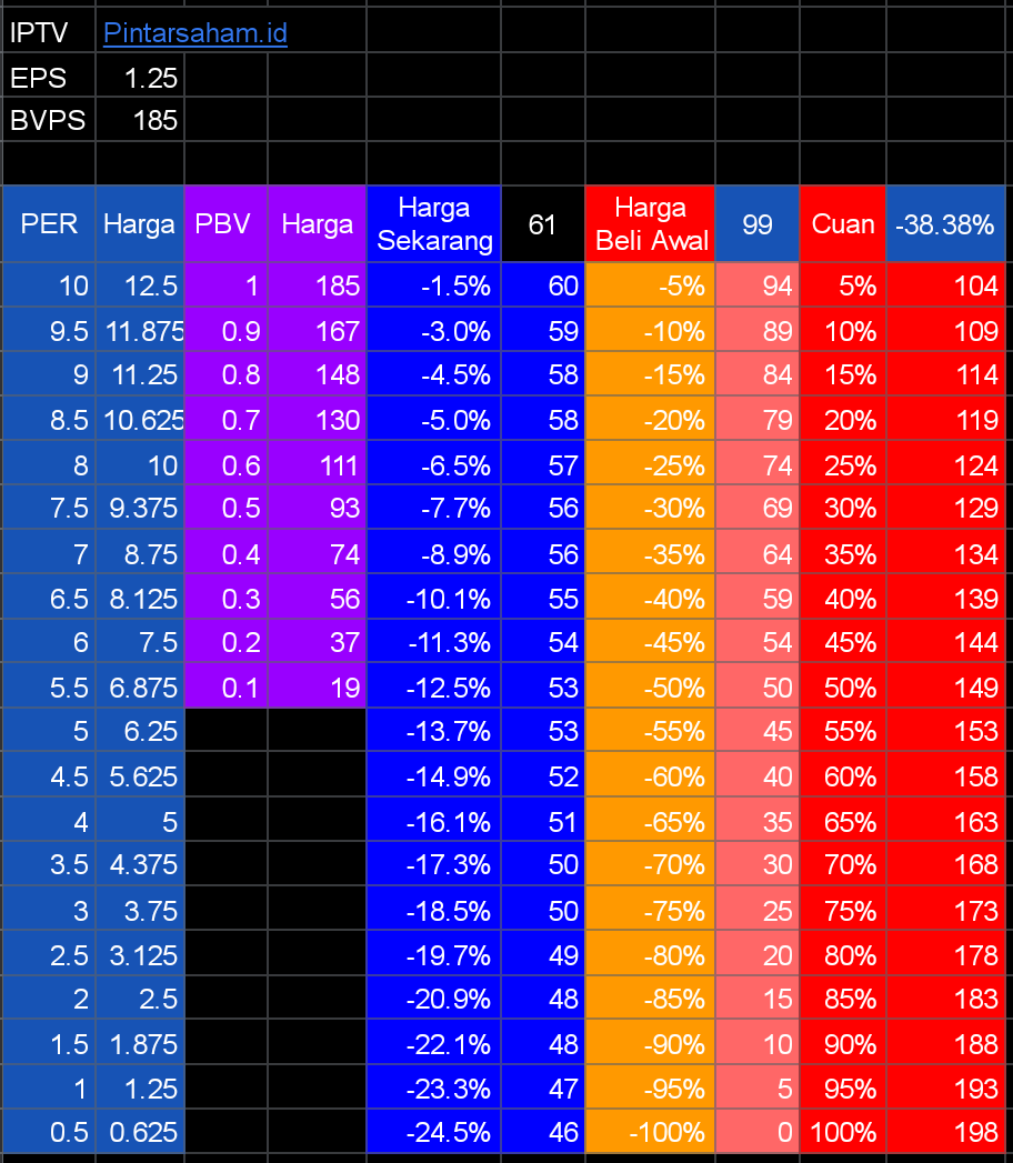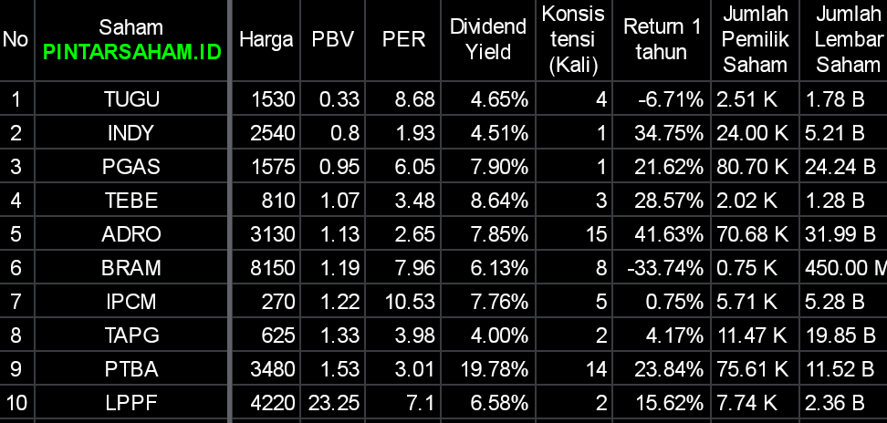 Saham Hari Bursa Harga PBV PER Start