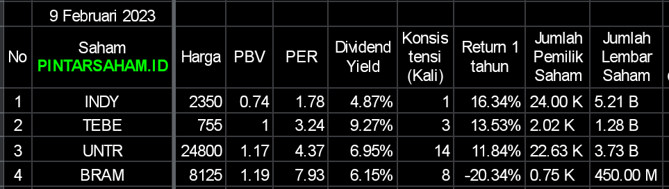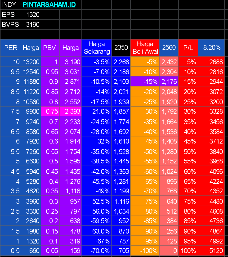 - 9 Februari 2023 Bid Hanya Jika Harga INDY <2360 atau setara dengan PBV < 0,75