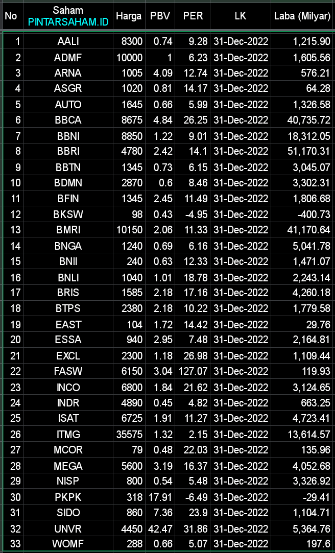 Sejauh ini sudah 33 emiten yang rilis LK Full Year 2022 (Per 23 Februari 2023)