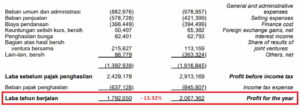 Laba bersih ini menyusut -13,32% dari Rp2,06 triliun pada periode yang sama di tahun 2021