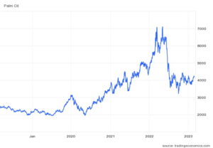 Sehingga jelas salah satu penyebab menurunnya pendapatan perusahaan di tahun 2022 adalah adanya penurunan harga CPO. Di tahun 2022, harga CPO berawal di 4857 MYR/T dan berakhir di 4174 MYR/T atau turun -14,06%.