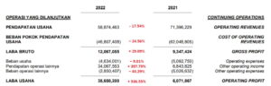 Hal mengejutkan datang dari pendapatan operasional lainnya, di mana pada tahun 2022 lalu perusahaan mendapatkan USD 34,06 juta atau meningkat 397,79% secara tahunan.