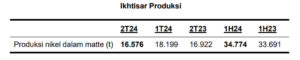 Pada 2T24, Perseroan mencapai penjualan 17.505 metrik ton (“t”) nikel matte, menghasilkan pendapatan sebesar AS$248,8 juta.
