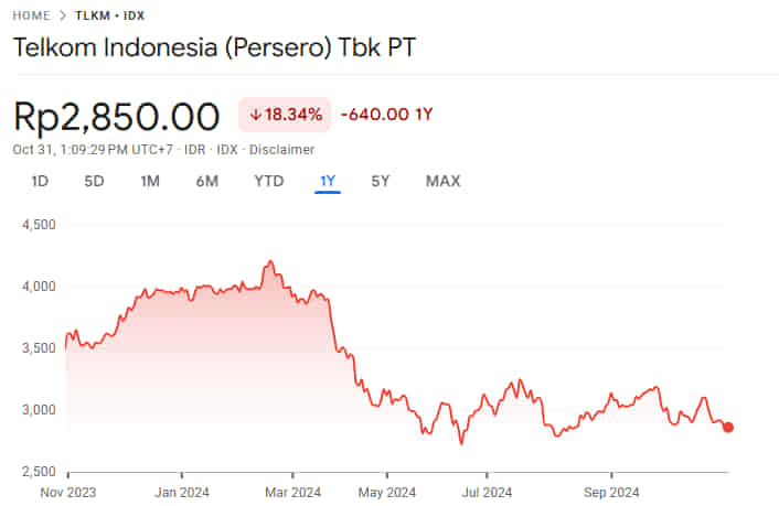 PT Telkom Indonesia (Persero) Tbk menunjukan kinerja yang menurun di kuartal 3 tahun 2024.